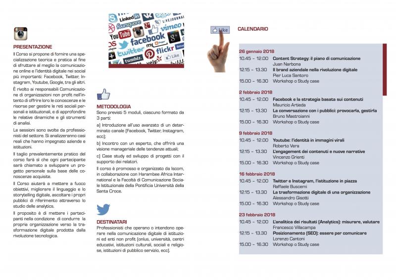 Il corso è promosso e organizzato da Iscom, in collaborazione con Harambee Africa International e la Facoltà di Comunicazione Sociale Istituzionale della Pontificia Università della Santa Croce.