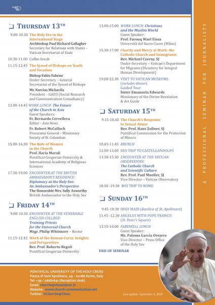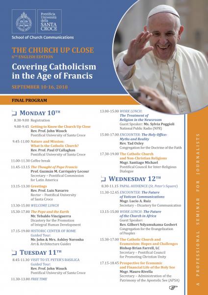 Church Up Close è un appuntamento ormai tradizionale per i giornalisti che si occupano della Chiesa. Sono numerose infatti le edizioni di questi seminari, organizzati nelle lingue inglese, italiano, spagnolo, francese e portoghese.